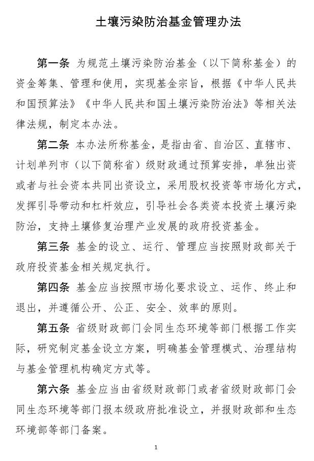為規(guī)范土壤污染防治基金的資金籌集、管理和使用,實(shí)現(xiàn)基金宗旨,根據(jù)《中華人民共和國預(yù)算法》《中華人民共和國土壤污染防治法》等相關(guān)法律法規(guī),我們制定了《土壤污染防治基金管理辦法》。現(xiàn)予印發(fā),請遵照執(zhí)行。