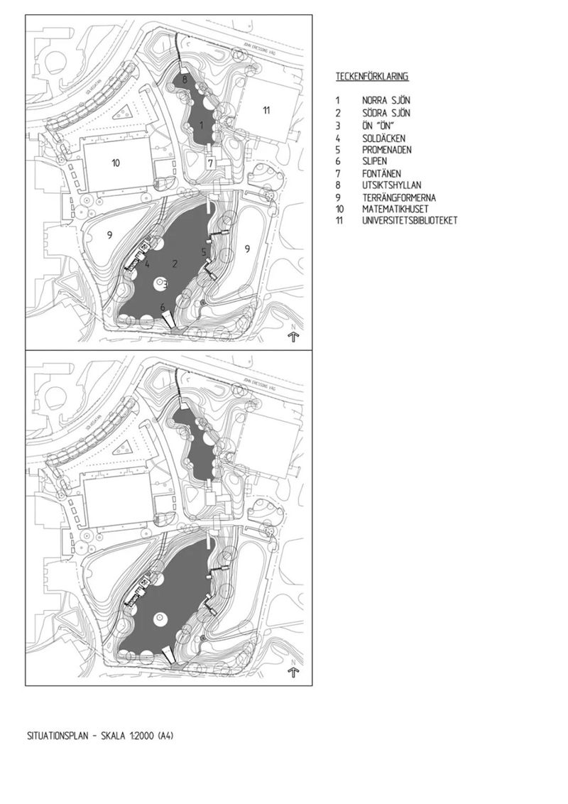 這個校園景觀項目便是針對如何補救上述缺點的一個解決方案,這塊場地相當(dāng)?shù)碾[蔽,而且風(fēng)還很大,不過有一個部分是突出的:兩個池塘周圍的區(qū)域。這塊區(qū)域原來是一個舊的粘土采石場,以前用來供應(yīng)制磚原料,粘土坑是地下的深井,如今已充滿了水。與周圍開闊、傾斜的地面相比,這里有著引人注目的背景環(huán)境:在邊緣處有一個急劇的下降,近乎垂直。這里的氣候不同于校園的其他地方,茂盛的植被可以抵御風(fēng)的吹拂,濱水的特點同時優(yōu)化了場地質(zhì)量,這應(yīng)該是學(xué)校發(fā)展新社交中心的一個良好開端,多年來它一直缺乏這種社交屬性。